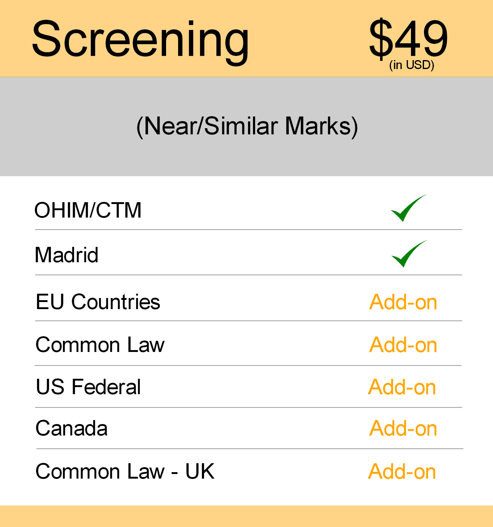 Package includes trademark searching coverage of OHIM/CTM and Madrid with add-ons such as Common Law, US Federal and US States.
