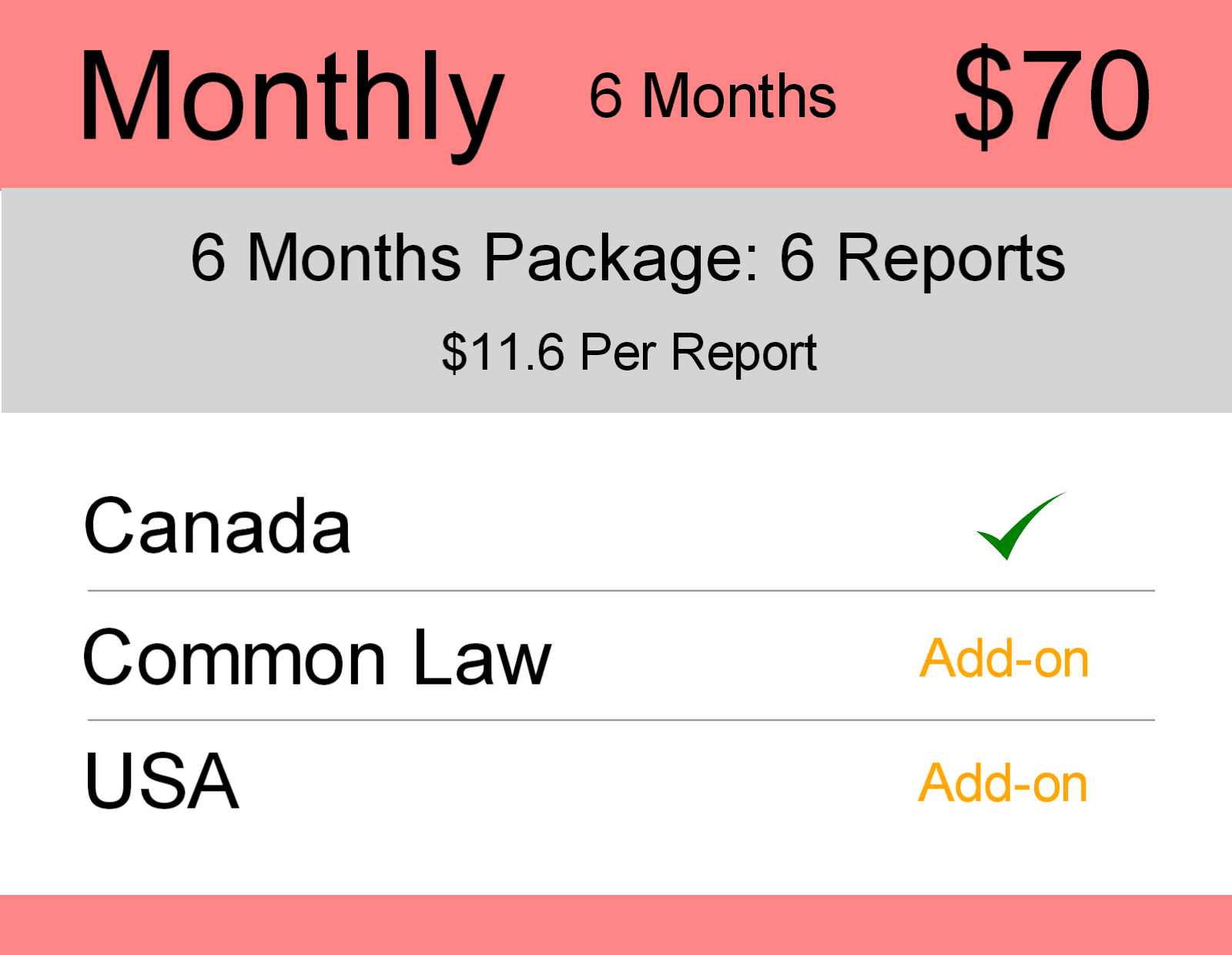 Monthly 6 Months – Canada TM Monitoring (3) Posted on August 26, 2015October 28, 2015 by admin This package includes search coverage of Canada with add-ons such as Common Law – Canada and US Federal.