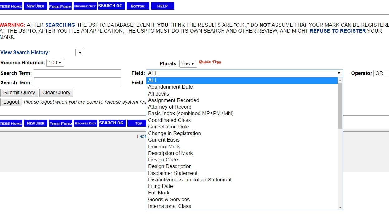 Understanding Various Features of USPTO Trademark Search Database